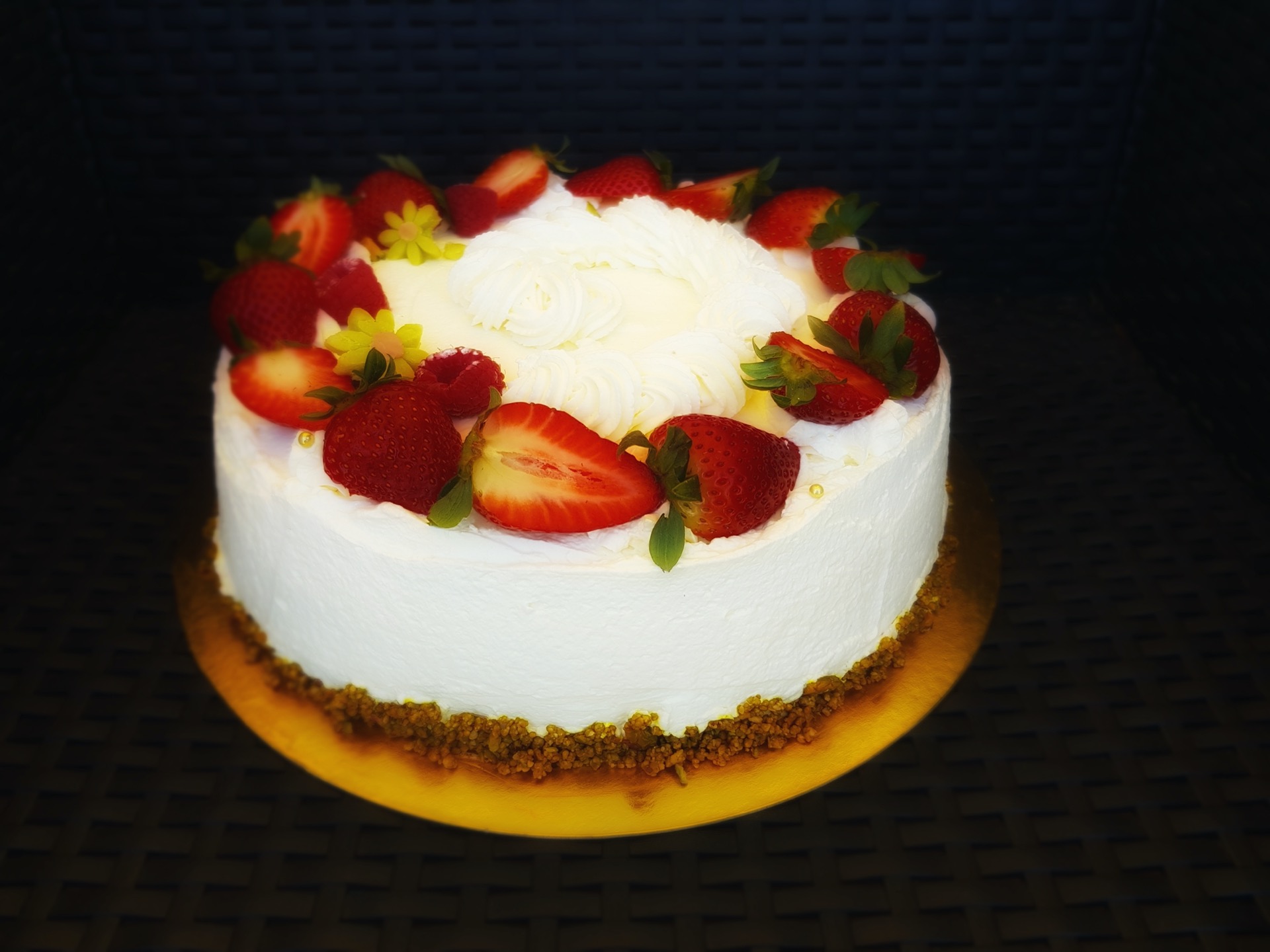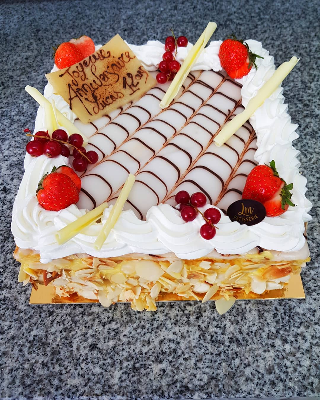 Génoise, crème légère vanille, chantilly, fruits de saisons.
